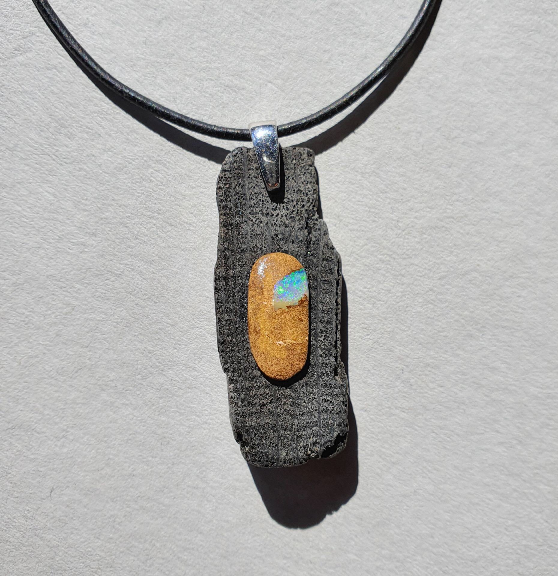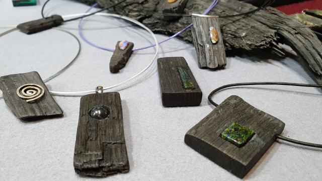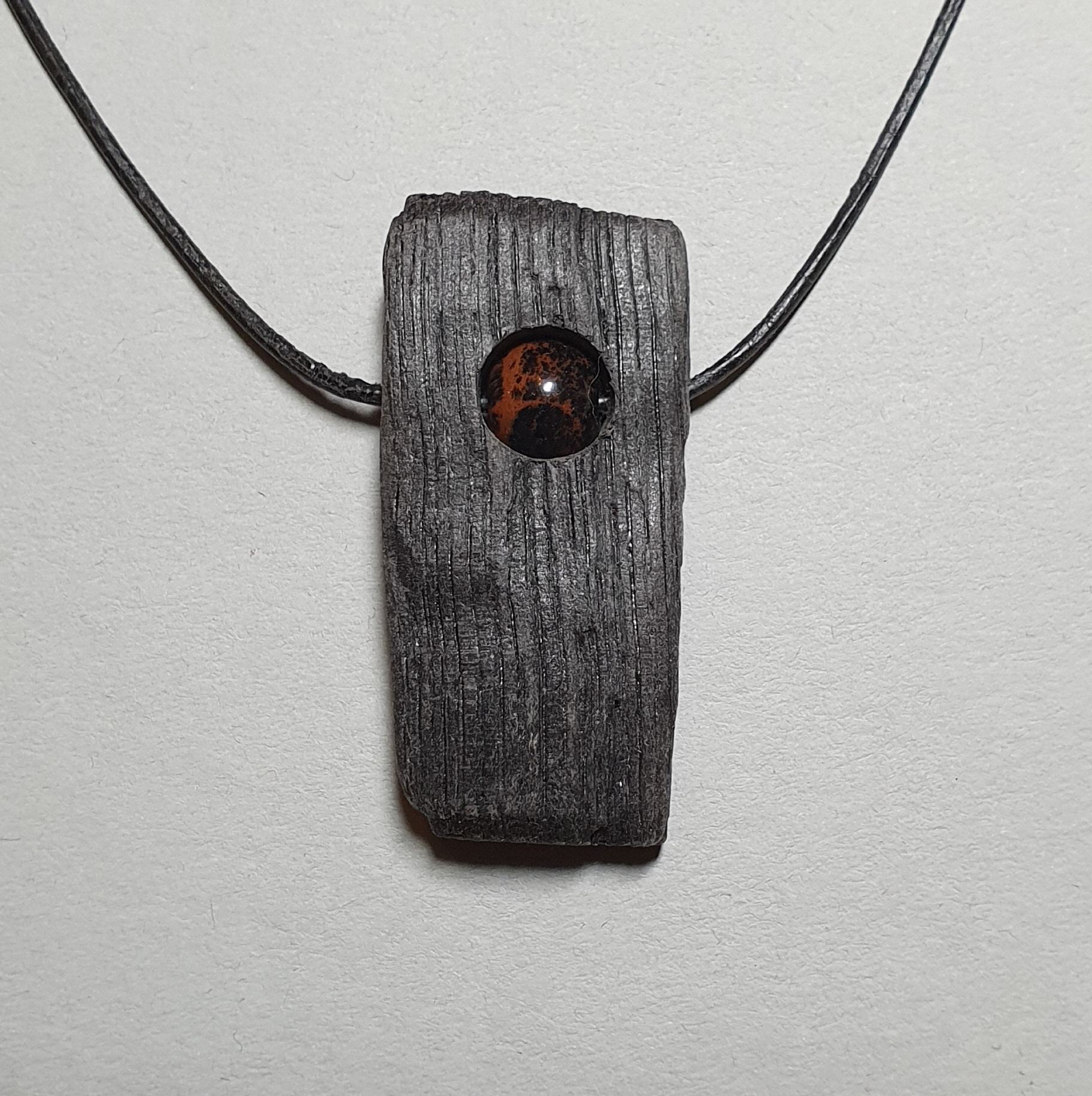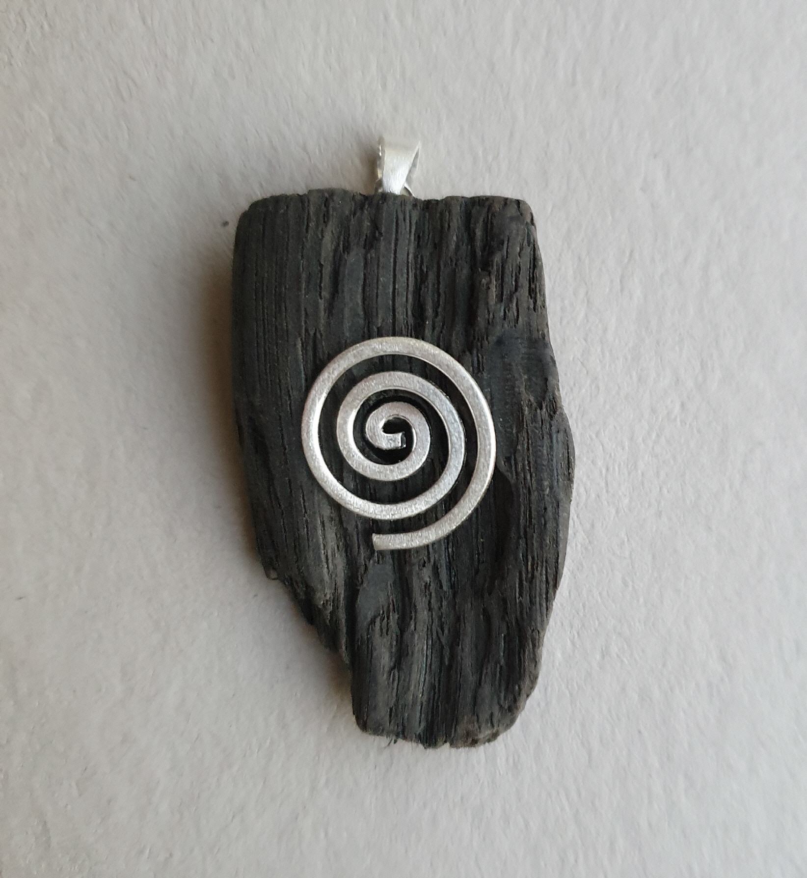 Einige Bruchstücke werden von mir aufwendig zu Schmuckstücken verarbeitet. Das Holz wird gründlich gereinigt, getrommelt und getrocknet. In Verbindung mit 925er Silberelementen, beweglichen Steinkugeln und auch Matrix-Opal Einlagen werden diese zu edlen, einzigartigen "Wallenbrücker Holz" - Schmuckstücken verarbeitet.