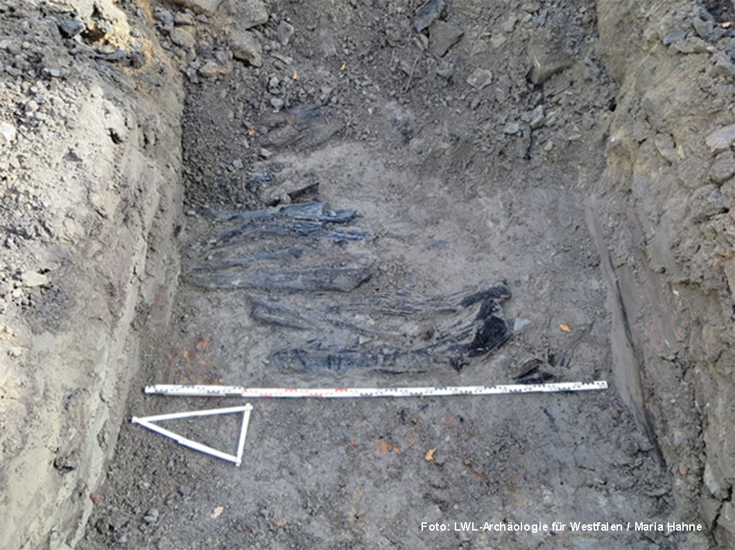 Archäologische Untersuchungen des Landschaftsverbands Westfalen-Lippe (LWL) ergeben, dass es sich bei den Funden unter der Straße um einen Holzbohlenweg, einen Vorgänger dieser Straße, handelt. Eine Altersbestimmung durch das Labor für Dendroarchäologie in Köln, anhand eingereichter Holzproben, schafft Klarheit über das Alter. Bei vier Eichenproben werden die Fälljahre auf 1671, 1683, 1684, und 1690 n. Chr. festgelegt. Durch Luftabschluss über diesen langen Zeitraum, in Verbindung mit Feuchtigkeit und der in der Eiche enthaltenen Gerbsäure, hat sich das Holz dunkelgrau bis schwarz verfärbt.